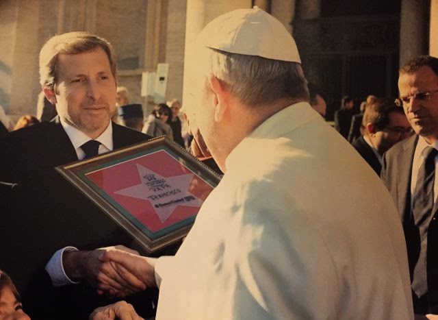 El presidente del Banco Ciudad, Rogelio Frigerio, y el vice de Fundaleu, Héctor Del Piano, viajaron a Roma donde el Santo Padre bendijo una de las estrellas que será colocada en el árbol navideño más grande de la Argentina, en Plaza Estado del Vaticano, vecina del Teatro Colón.